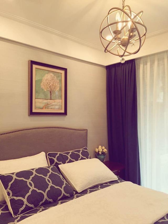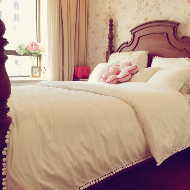 主卧室第一眼看到就喜欢上了,温润的木色,舒适的床品。可爱的花形抱枕,温馨的碎花壁纸,这样的美式风格卧室真的是太漂亮了,温馨自然。